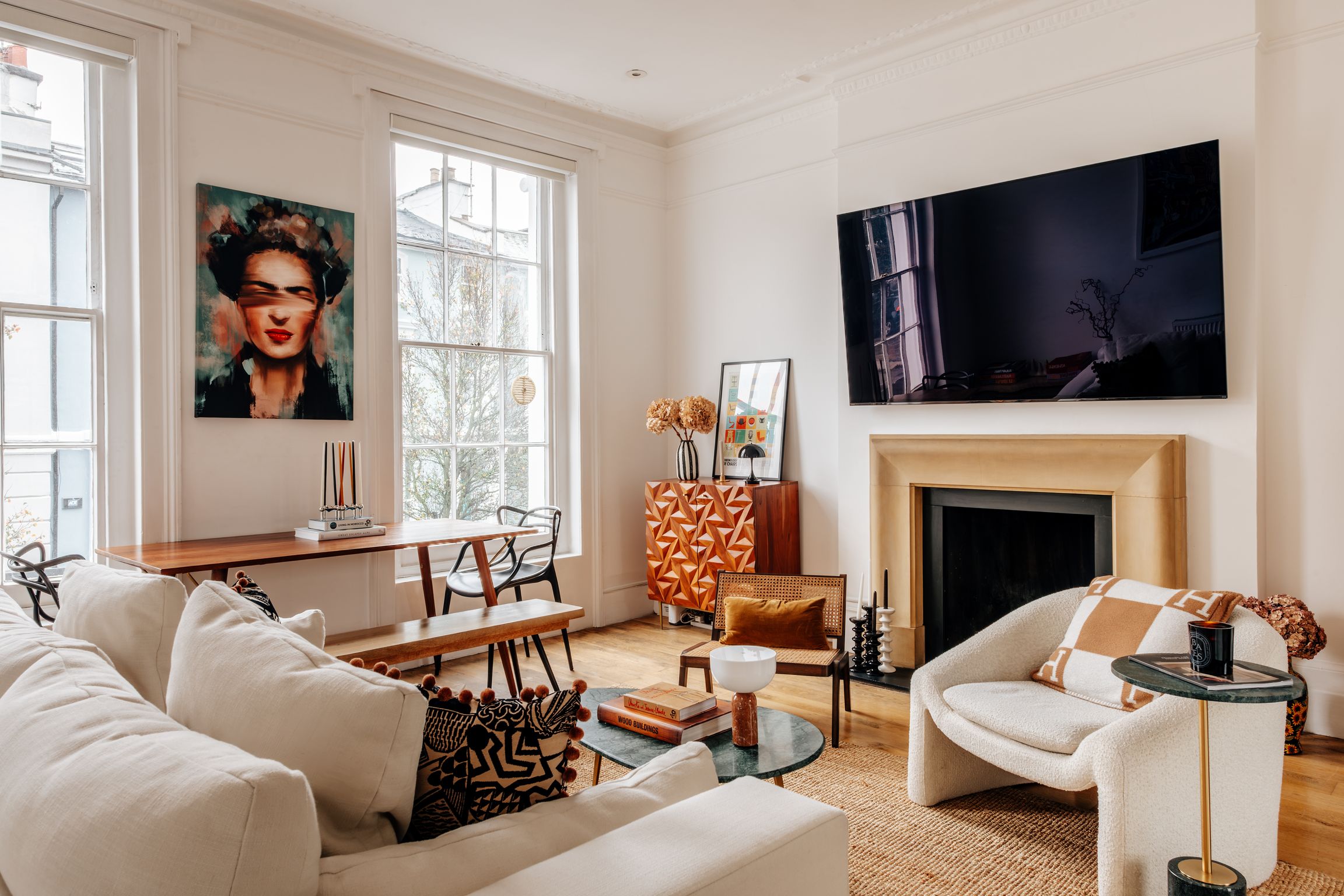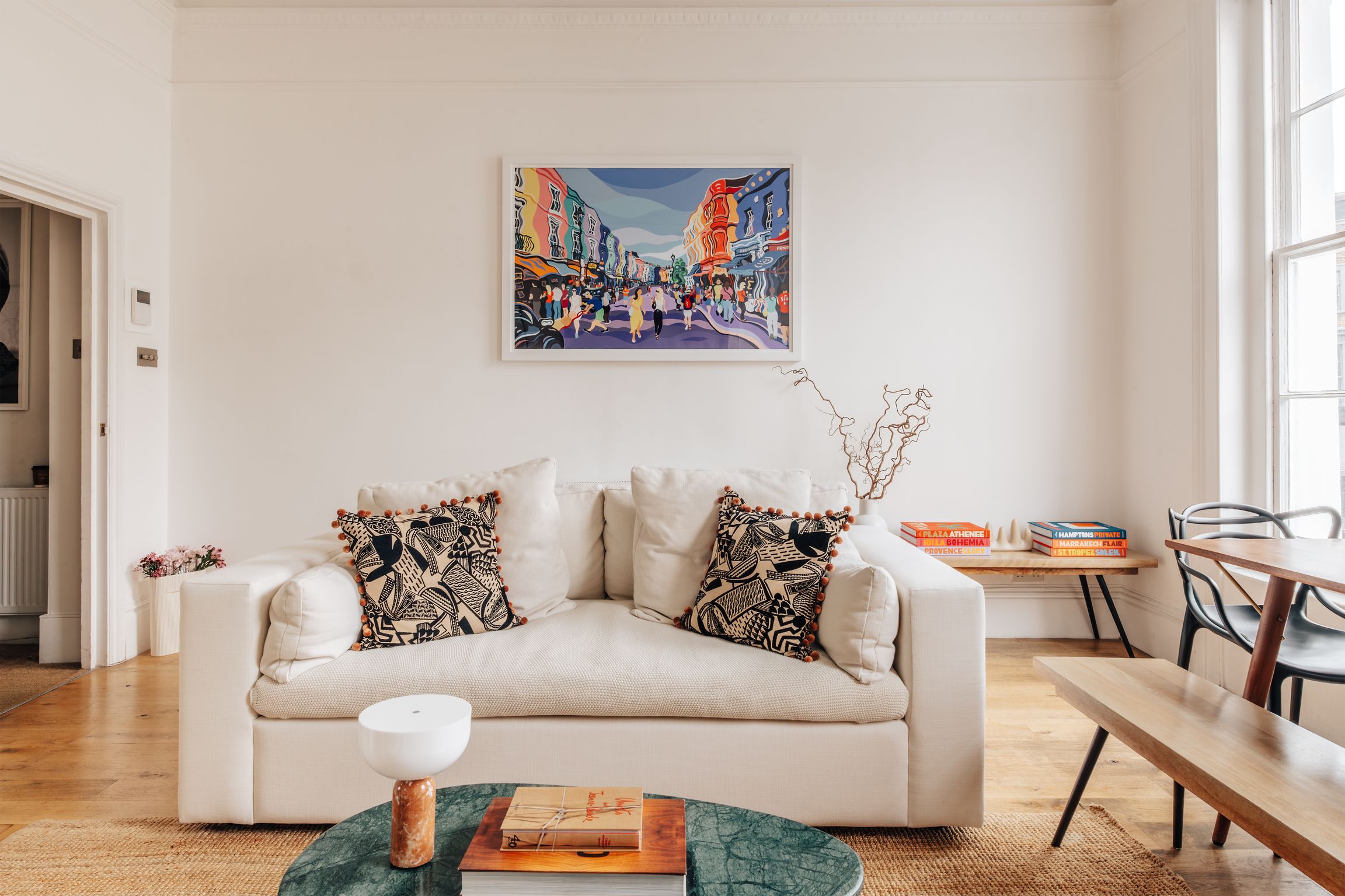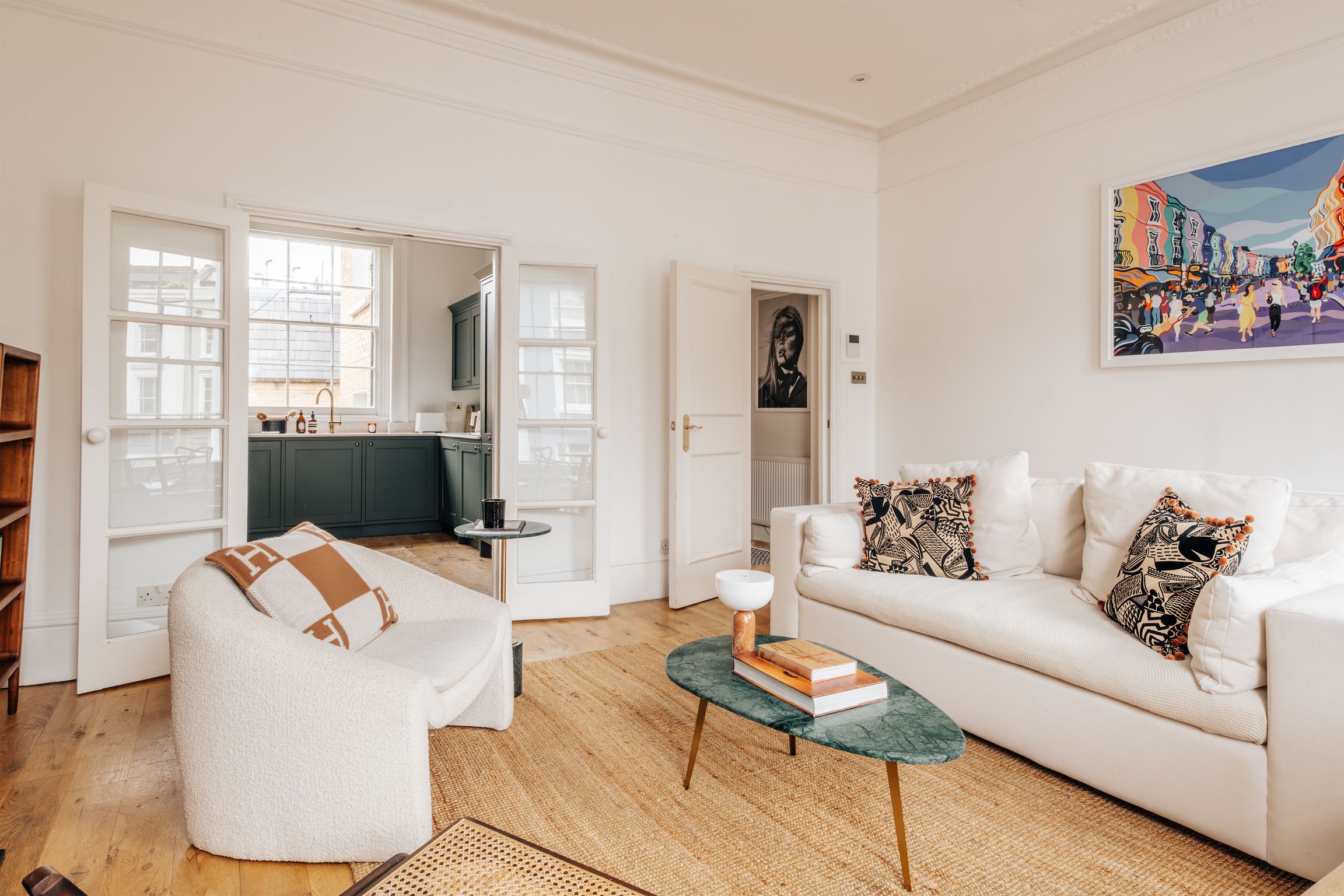 Your home-away-from-home in London’s most charming district. This bright and beautiful 2-bedroom flat offers comfortable living right in the center of Notting Hill. Enjoy slow mornings in a living area flooded with natural light and home-cooked meals in the fully equipped kitchen. It’s the perfect blend of modern convenience and cozy character. The property benefits from ultra fast Wifi (average 100mbps) and a full suite of media services, including Sky Q multi-room, Netflix, Disney, Paramount and Amazon Prime (among others), with TV's located in the living room and master bedroom. There is also a large Marshall speaker system in the living room and a smaller portable Marshal speaker in the master bedroom.