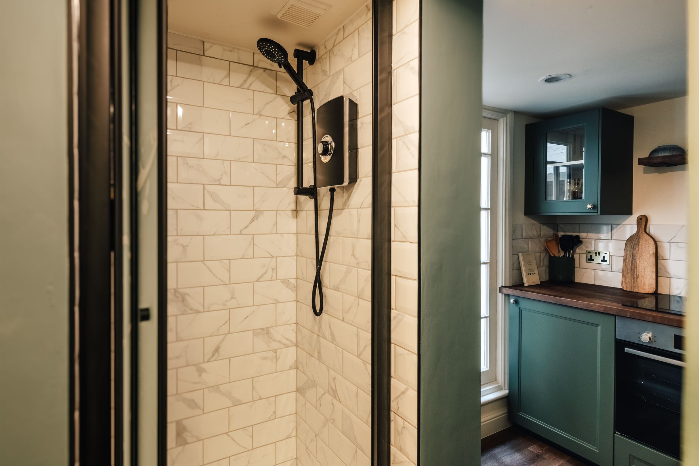 The master dressing area and en-suite bathroom is a touch of luxury, with a huge bath facing a wall-to- wall mirror, heated towel rail, wash basin & loo. The smaller guest bathroom has a shower, wash basin and loo. The studio has a shower, wash basin and loo.