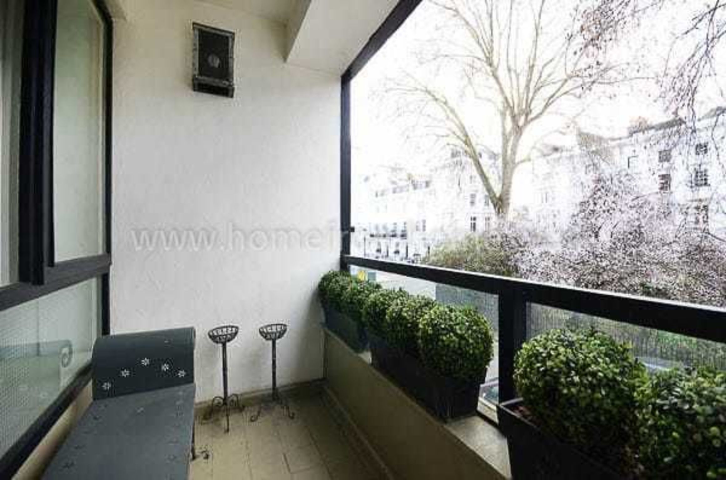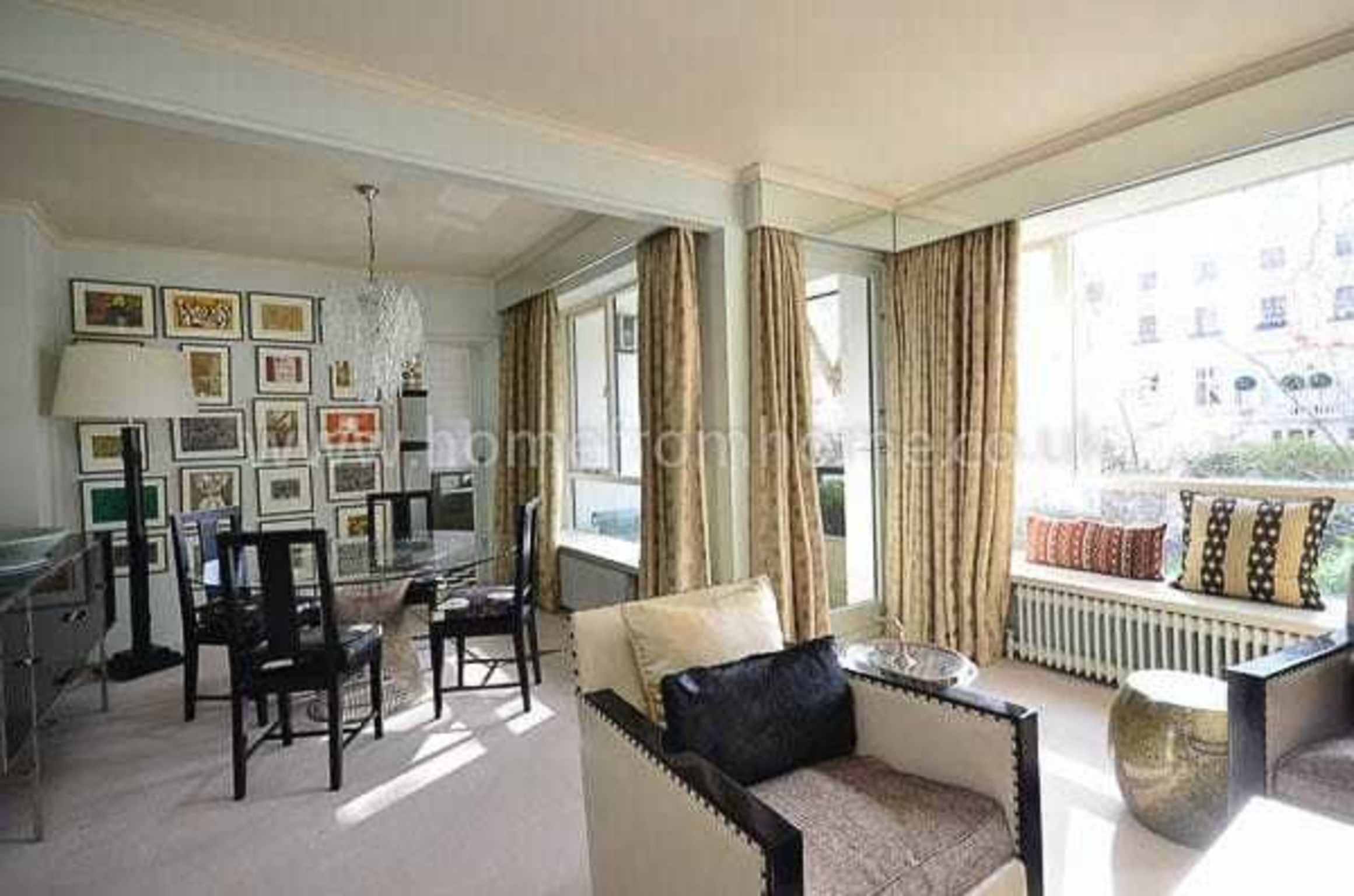 The spacious sitting room overlooks the garden square, and has a balcony where you can step out for an even better view of your elegant surroundings! The mix of antique and modern furniture in mellowed wood, metals, leathers and silks is enhanced by a multitude of eye-catching and intriguing objects and original artworks. The adjacent dining area is a mini-gallery of its own in bold black and white beneath a multi-layered chandelier. For further entertainment there is an LCD TV and a DVD player on hand.
